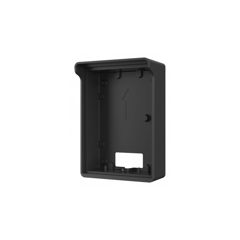 Soporte con visera protectora diseñado para la estación de exterior VTO2202F, instalación en superficie, fabricado en aleación de aluminio, acabado en color negro, proporciona protección de tipo IP65 con sellado adicional, pensado para ambientes exteriores donde la durabilidad y la resistencia a la intemperie son requisitos clave.