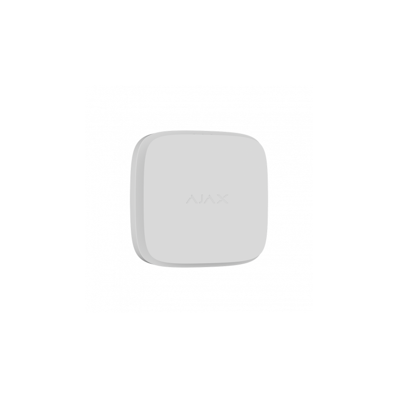 Detector termovelocimétrico y de monóxido de carbono, funcionamiento inalámbrico a 868 MHz con protocolo Jeweller, alimentación de AC de 110 a 240 V, autonomía con batería de respaldo, incorpora sirena de 85 dB. Permite funcionamiento autónomo, soporta transmisión bidireccional y alcanza hasta 1700 metros en espacio abierto. Incorpora tamper anti-apertura y admite interconexión con detectores Ajax para alarmas sincronizadas. Incluye soporte, certificado EN 14604 y EN 50291, color blanco, uso en interiores.