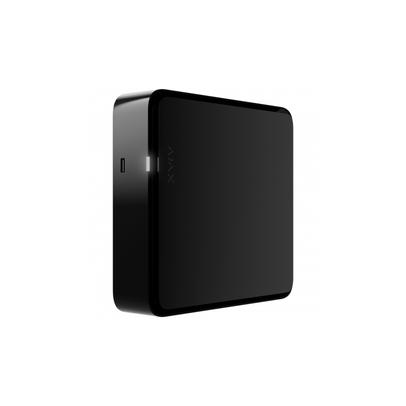 Grabador NVR Ajax para videovigilancia IP, admite hasta 16 canales con resolución de hasta 4K, compresión H.265 y H.264, ancho de banda de 100 Mbps, salida HDMI, diseñado en color negro, integra espacio para un disco duro SATA de hasta 16 TB, compatible con cámaras ONVIF y RTSP, proporciona comunicación Ethernet mediante RJ45 y acceso remoto a través de la aplicación Ajax, incorpora funciones inteligentes como detección de movimiento y detección de objetos mediante inteligencia artificial, permite actualizaciones de firmware remotas OTA, acondicionado para operar en temperaturas de 0°C a 40°C y 75% de humedad, dimensiones de 212 alto por 212 ancho por 64 fondo milímetros y peso de 782 gramos.