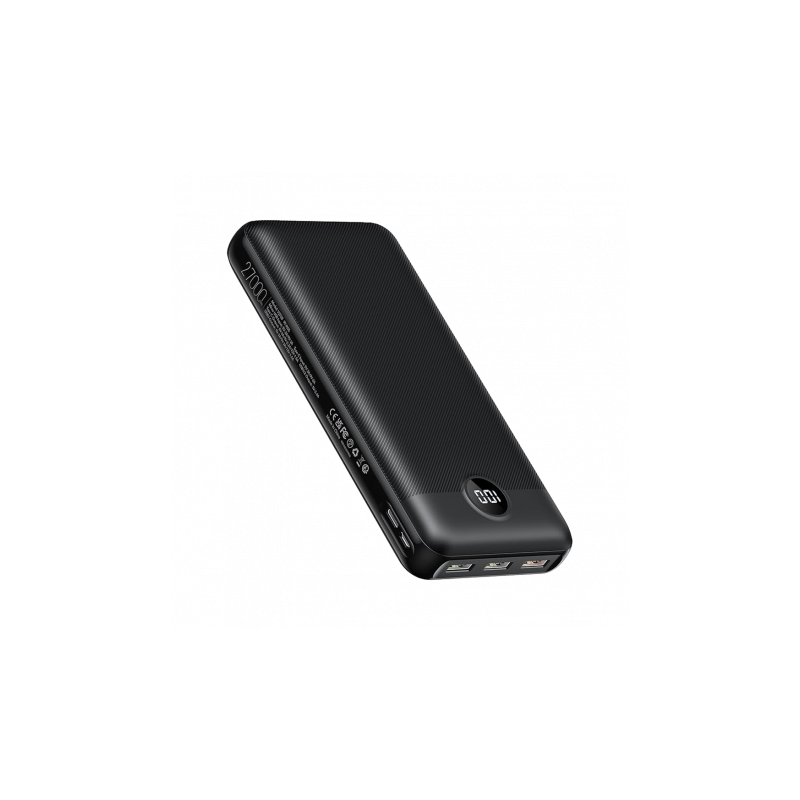 Power bank Veger, capacidad 20000mAh, pantalla LCD, 2 entradas USB-C, 3 salidas, carga rápida 22.5W, color negro.