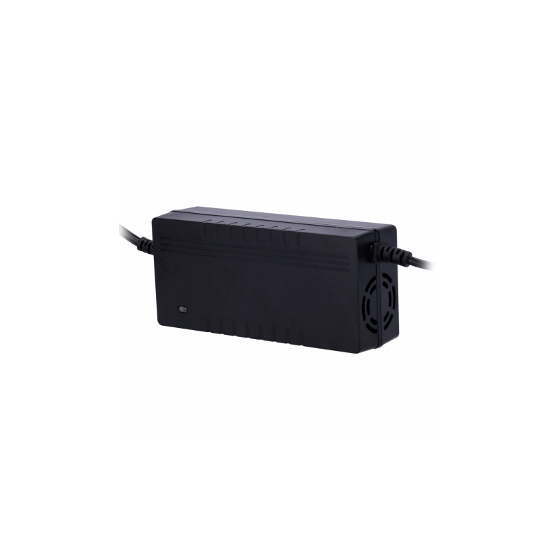 Fuente de alimentación AC Safire, diseñada para alimentar baterías en kits solares, equipada con conector de 4 pines. Permite cargar la batería de los kits solares Safire compatibles mediante conexión a la red eléctrica cuando el nivel de energía es bajo. Se instala entre el panel solar y la batería, utilizando conector europeo Schuko y conector 4 pin a batería. Compatible con modelos SF-SOLARKIT-BATT-1280WH, SF-SOLARKIT-BATT-1920WH-24V y SF-SOLARKIT-BATT-2560WH-24V.