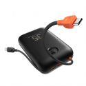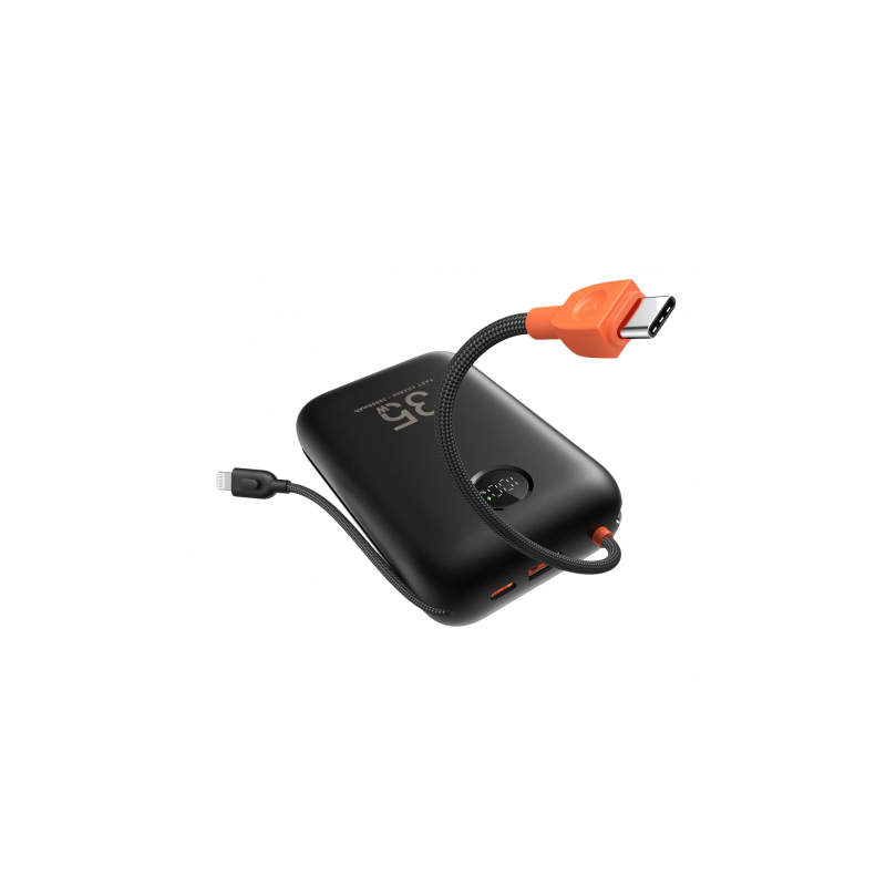 Power Bank Veger, capacidad de 30000 mAh, display LCD, carcasa negra, polímero de litio, ofrece carga rápida de hasta 35 W y permite cargar hasta 3 dispositivos a la vez, incluye cables USB-C y Lightning integrados, entradas 1 cable USB-C y 1 puerto USB-C, salidas 1 cable Lightning, 1 cable USB-C, 1 puerto USB-C y 1 puerto USB-A, protocolo de carga PD3.0, QC3.0, SuperCHARGE y PPS, compatible con smartphone, tablet y laptop.