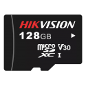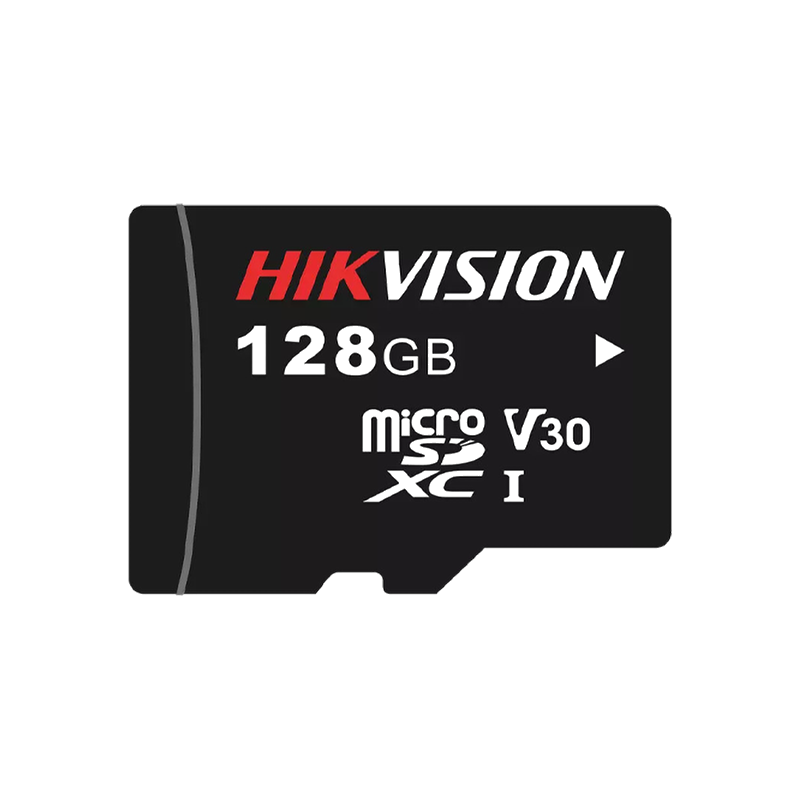 Tarjeta de memoria Hikvision. Tecnología 3D TLC NAND. Capacidad 128 GB. Clase 10, velocidad de escritura 85 MB/s, más de 3000 ciclos de lectura y escritura. Apto para dispositivos de videovigilancia.