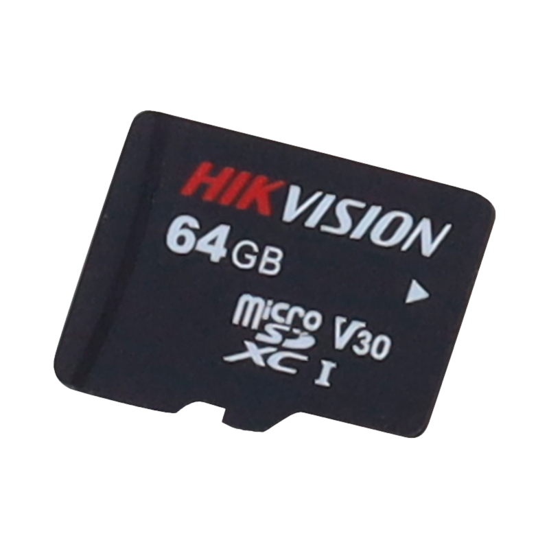 Tarjeta de memoria Hikvision. Tecnología 3D TLC NAND. Capacidad 64 GB. Clase 10. Velocidad de escritura 25 MB/s. Más de 3000 ciclos de lectura/escritura. Apta para dispositivos de videovigilancia.