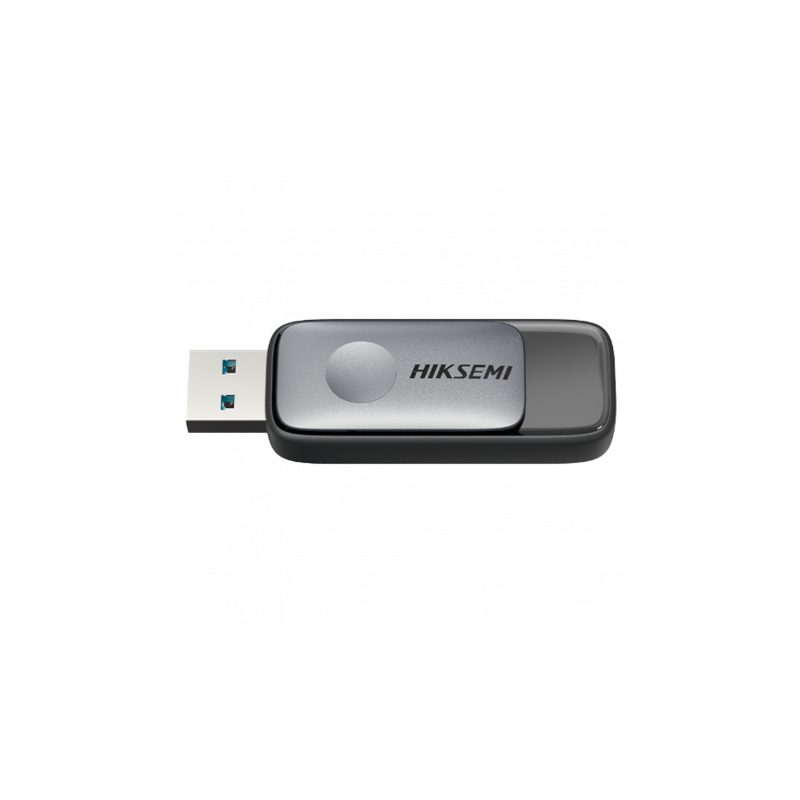 Pendrive USB Hikvision, capacidad de 64 GB, interfaz USB 3.2, velocidad de lectura máxima de 120 MB/s y velocidad de escritura máxima de 45 MB/s, formato compacto y ligero, acabado en color gris.