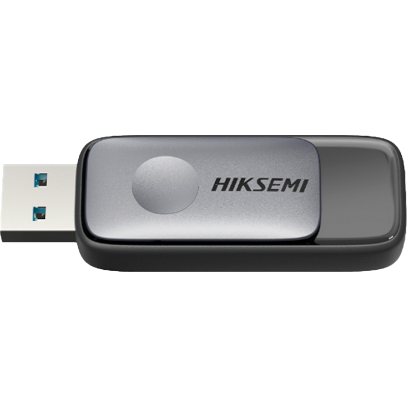 Pendrive USB Hikvision, 128 GB, interfaz USB 3.2, lectura 120 MB/s, escritura 45 MB/s, diseño compacto, color gris.