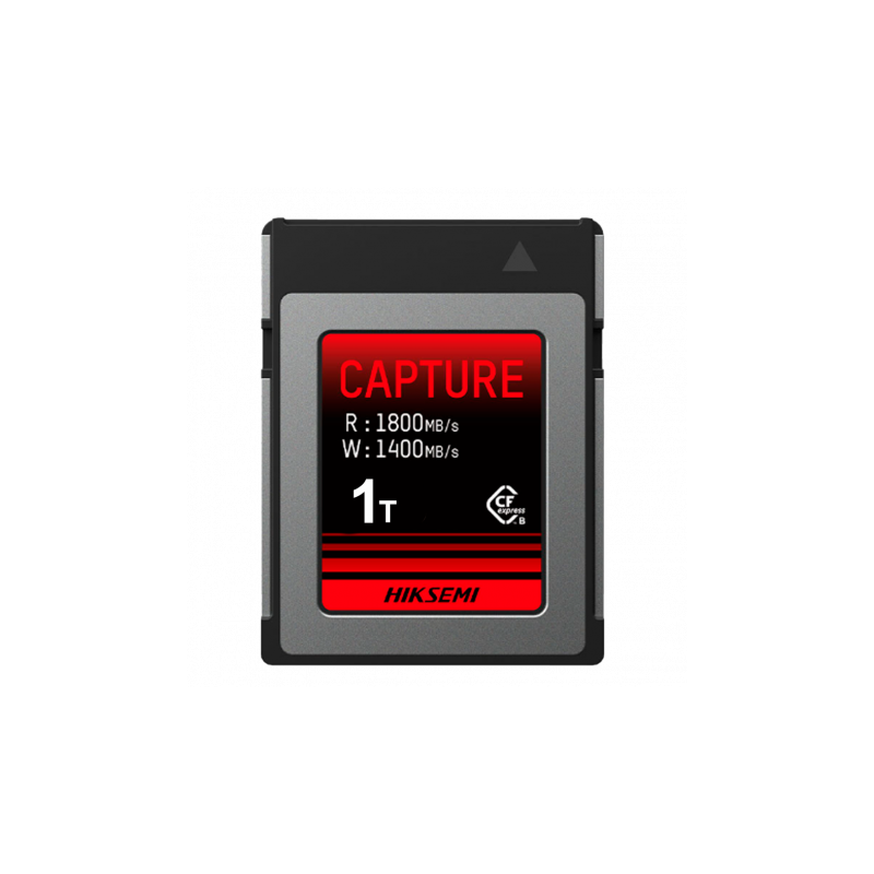 Tarjeta de memoria CFExpress Tipo B Hikvision, capacidad de 1 TB, diseñada para fotografía profesional, proporciona velocidades de lectura de hasta 1800 MB/s y escritura de hasta 1400 MB/s, adecuada para imágenes y vídeos en calidad 8K, equipada con conector PCIe Gen 3 x 2 y tecnología NAND 3D TLC, permite hasta 3.000 ciclos de lectura y escritura, garantiza alto rendimiento y durabilidad para equipos exigentes.