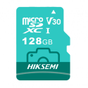 Tarjeta de memoria microSD Hikvision, 128 GB de almacenamiento, clase 10, clasificación U3 y V30, velocidad máxima de lectura 100 MB/s, velocidad máxima de escritura 70 MB/s, utiliza tecnología NAND TLC, soporta hasta 300 ciclos de lectura y escritura, diseñada para videovigilancia, gaming y tablets, formato microSDXC, proporciona un rendimiento estable y confiable para tareas intensivas y aplicaciones profesionales.