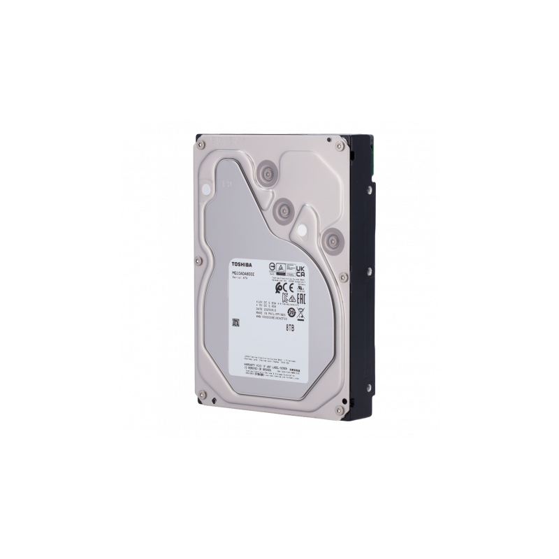 Disco duro Toshiba S300 AI MG10ADA800E-V de 8 TB, SATA 6 Gb/s, diseñado para sistemas NVR avanzados con inteligencia artificial, disponible suelto o instalado en videograbadores, soporta hasta 32 transmisiones de inteligencia artificial, rendimiento optimizado para vigilancia inteligente, funcionamiento 24 horas, análisis de datos de alto volumen y retención de vídeo a largo plazo, tasa de transferencia hasta 281 MB/s, formato 3.5 pulgadas, buffer de 512 MB, velocidad de rotación de 7200 rpm, tecnología CMR, robusto tiempo medio entre fallos de hasta 2 millones de horas y carga de trabajo de 550 TB por año.