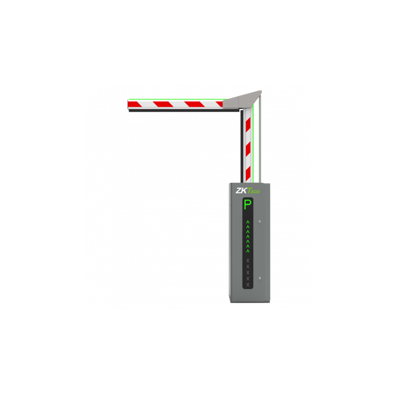 Barrera de parking ZKTeco, brazo acodado en 90º de 3 metros, servomotor de 5.000.000 ciclos, indicadores LED, apta para exterior.