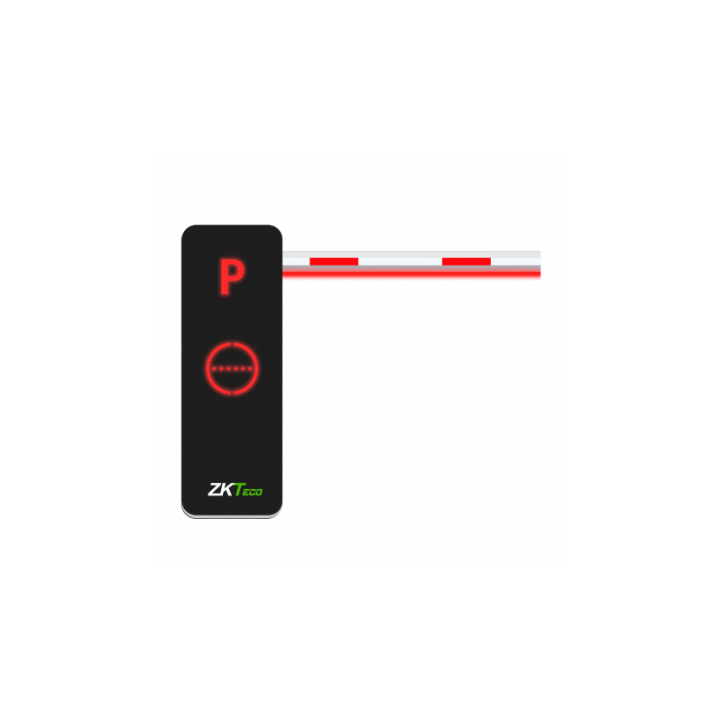 Barrera de parking ZKTeco, brazo recto de 4.5 metros, indicadores LED, motor sin escobillas, ciclos de hasta 3.000.000, apta para exterior.