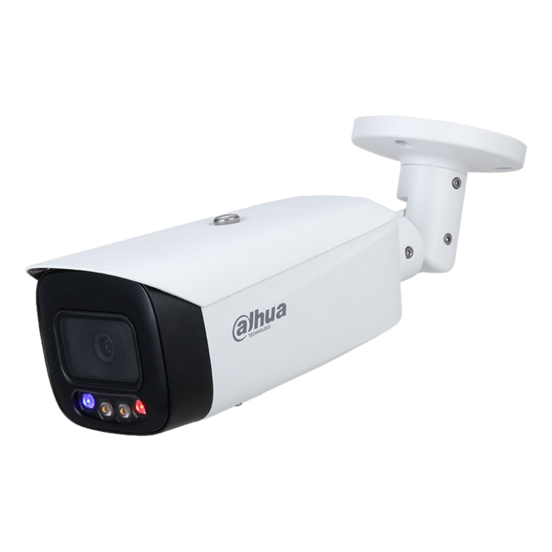 Cámara IP Dahua WizSense. 5MP@20ips, Smart H265+. Full Color 24h, 0,003 lux, Smart Light 40 metros. Óptica fija de 2,8 mm. WDR 120dB, 3D-NR, 4 ROI. Protección perimetral. Disuasión activa (luz+sonido). 1 entrada / 1 salida de audio (incorpora micrófono). 1 entrada / 1 salida de alarma. Ranura MicroSD, RJ45, ONVIF, IP67, 3AXIS, PoE