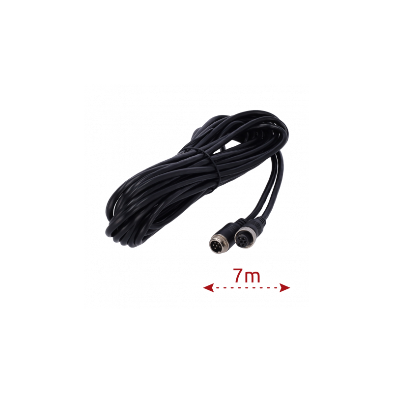 Cable para cámaras IP con conectores M12 de aviación, 6 pines, longitud de 7 metros, diseño hembra a hembra, adecuado para entornos exigentes, proporciona conexión segura y estable, compatible con modelos Streamax y cámaras IP que requieren conector M12, ideal para instalaciones donde la distancia y la resistencia del cable son primordiales.
