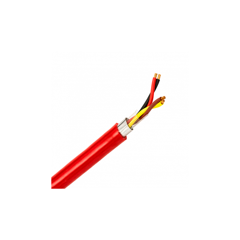 Cable trenzado apantallado, rollo de 100 metros, conductor de cobre 2x2x1.5mm², libre de halógenos, CPR B2ca, especial incendio.