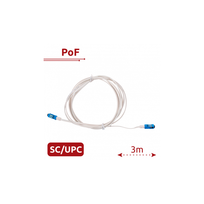 Cable PoF de 3 metros, conector SC UPC simplex, inyección de datos y alimentación por fibra, marca V-SOL.