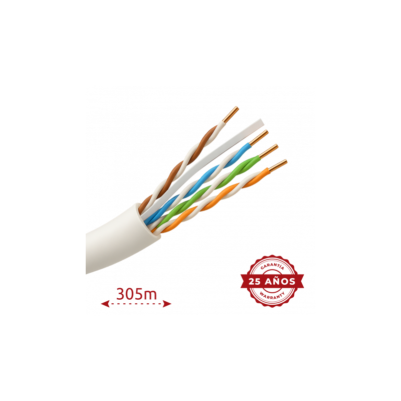 Cable UTP categoría 6, libre de halógenos, rollo de 305 metros, diámetro 0.5 mm, cumple con 90 metros Fluke test.