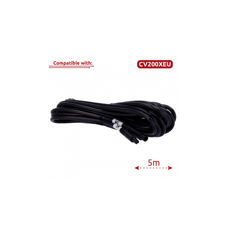 Cable extensor de 5 metros compatible con la cámara Dashcam CV200XEU, permite ampliar la distancia de instalación entre la cámara y el dispositivo principal, ideal para aplicaciones en vehículos que requieren flexibilidad adicional. Proporciona conexión estable y eficiente, brindando soluciones para diversas configuraciones de montaje.