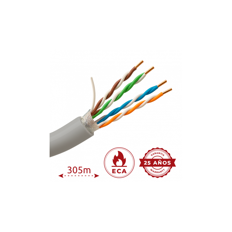 Cable FTP Safire categoría 5E, longitud 305 metros, conductor CCA 24 AWG, aislamiento HDPE, cubierta PVC, certificado ISO/IEC11801.