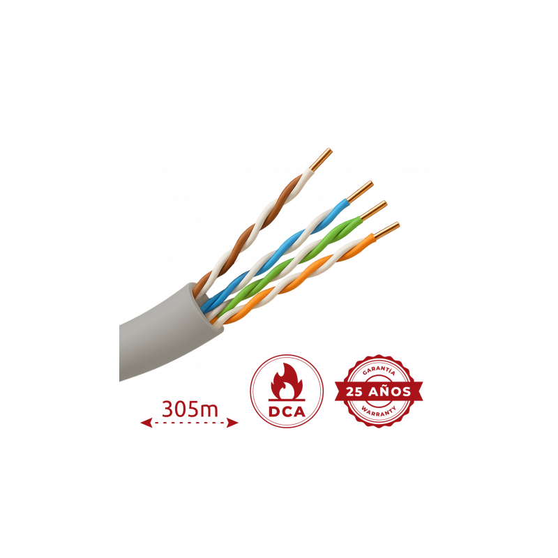 Cable UTP categoría 5e, libre de halógenos, rollo de 305 metros, diámetro 0.5 mm, cumple con 90 metros Fluke test.
