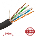 Cable UTP de exterior, categoría 6, 305 metros, conductor OFC 99.9% cobre, diámetro 5.5 mm, color negro, cumple 90 metros Fluke test.