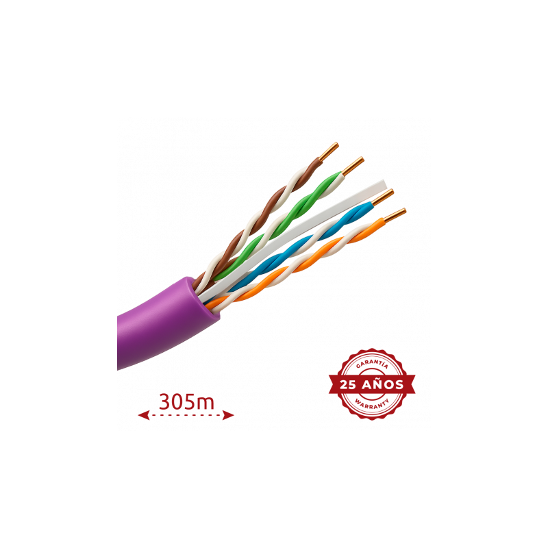 Cable UTP rígido categoría 6, libre de halógenos, conductor OFC, rollo de 305 metros, diámetro 5 mm, cumple 90 metros Fluke test.