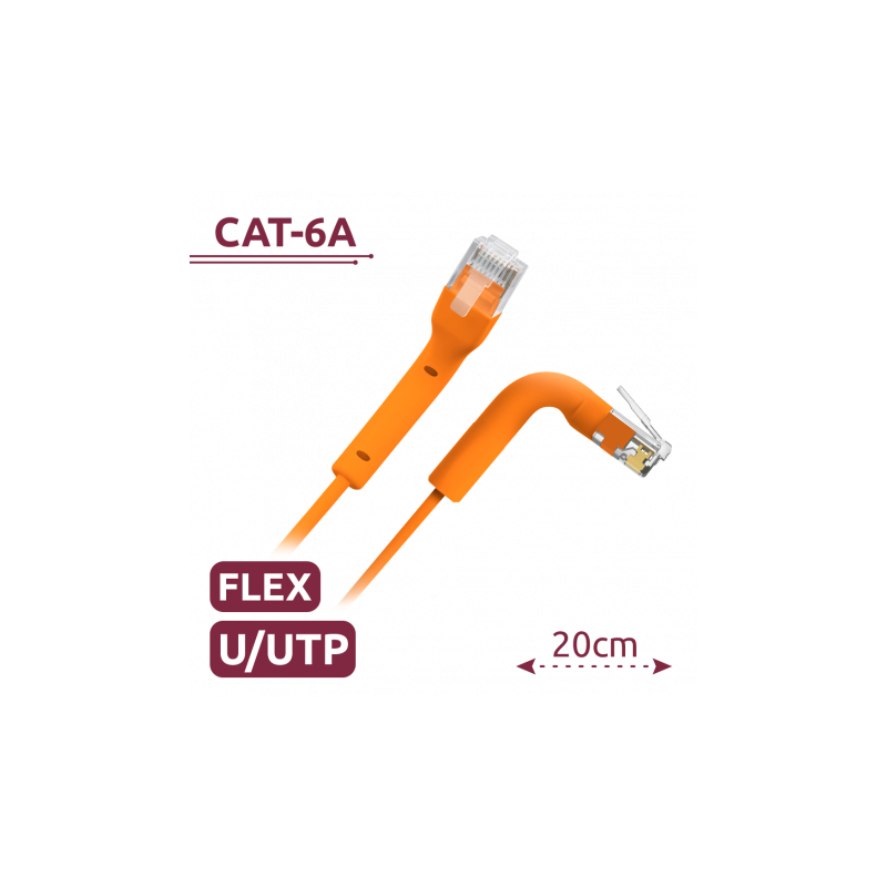 Cable UTP flexible categoría 6A, 0,2 metros, RJ45, cubierta TPE, color naranja, para redes Ethernet de alto rendimiento.
