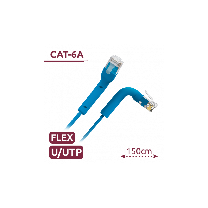 Cable UTP flexible de 1,5 metros, categoría 6A, conectores RJ45, cubierta TPE, color azul, para enlaces Ethernet de alta densidad.