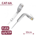 Cable UTP flexible categoría 6A, 0,3 metros, conectores RJ45, cubierta TPE, color blanco, rendimiento hasta 10G.