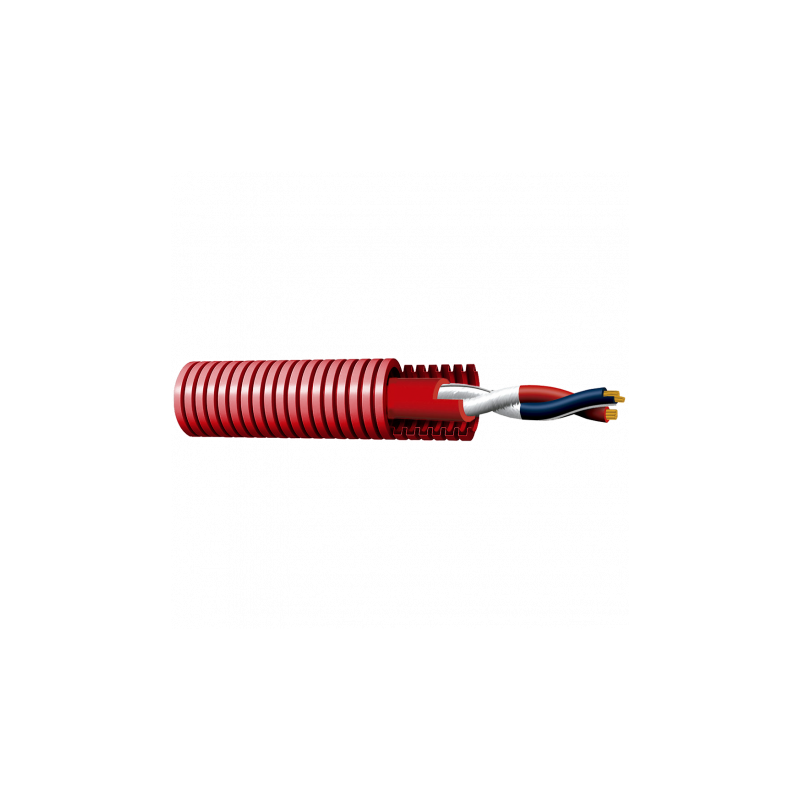 Cable trenzado apantallado, resistente al fuego 120 minutos, tubo corrugado, 2x1mm2, cobre, rollo de 100 metros, certificado EN 50575.
