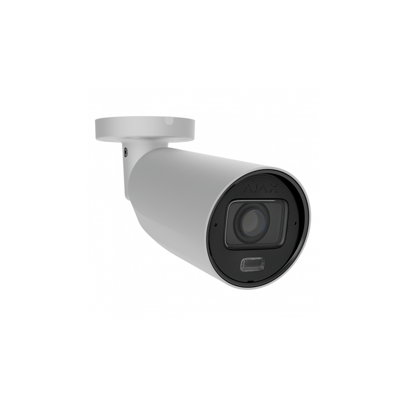 Cámara IP Bullet Ajax de 5 megapíxeles con sensor CMOS progresivo de 1/2.7 pulgadas, lente varifocal motorizada de 2.8 a 12 mm, visión nocturna a través de infrarrojos hasta 60 metros y luz blanca hasta 40 metros, protección IP67 e IK10, micrófono integrado, compresión de vídeo H.265, almacenamiento mediante tarjeta MicroSD hasta 256GB, alimentación PoE, funciones avanzadas de detección de movimiento, inteligencia artificial y compatibilidad ONVIF y P2P para acceso remoto.