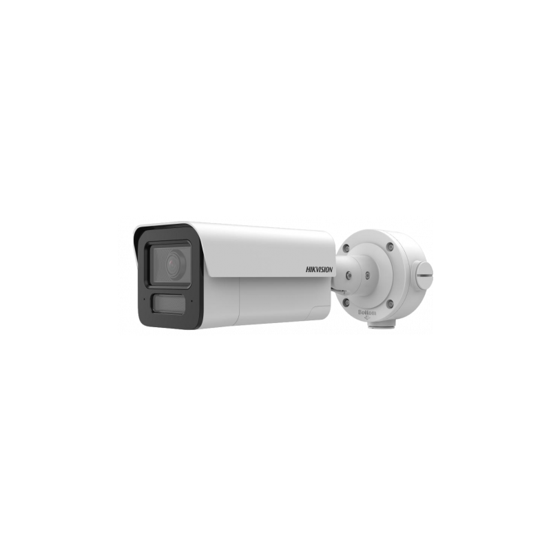 Cámara Bullet IP Hikvision SOLUTIONS con sensor 1/1.8'' Progressive Scan CMOS, resolución de 4 megapíxeles (2688x1520), tecnología DarkFighter y ColorVu para sensibilidad avanzada en baja luz, e integración AcuSense para reducción de falsas alarmas por vehículos y personas. Lente fija de 4 mm, cinco streams simultáneos, compresión H.265+ y opciones H.265 y H.264, rendimiento WDR de 120 dB, reducción de ruido digital 3D-DNR, filtro mecánico ICR removible. Luz híbrida IR y blanca con alcance de hasta 80 metros, micrófono y altavoz integrados, detección de movimiento 2.0, eventos inteligentes de cruce de línea, intrusión y otras funciones avanzadas de gestión de vídeo. Incluye ranura para MicroSD de hasta 1 TB, soporte PoE+ IEEE802.3at, alarma, calefactor, protección IP67 contra el agua, IK10 antivandálica y recubrimiento anti-corrosión NEMA 4X.