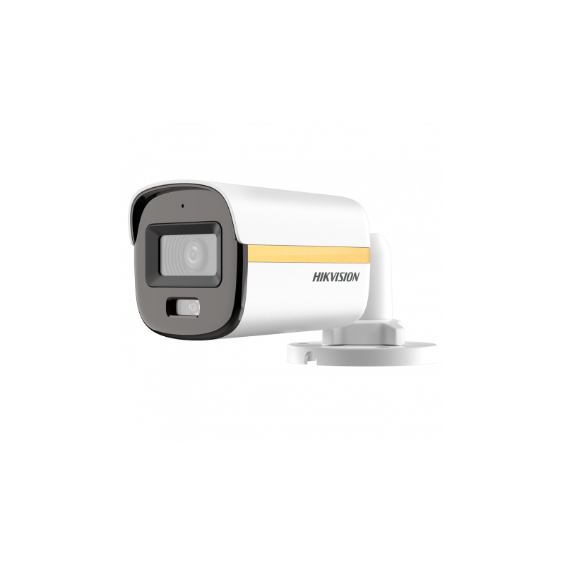 Cámara Bullet 4 en 1 Hikvision, gama PRO, resolución de 2 megapíxeles 1920x1080, lente fija de 3,6 mm, luz blanca con alcance de 20 metros, tecnología ColorVu para imagen a color 24 horas, impermeable con clasificación IP67, micrófono integrado, salida 4 en 1 compatible con HDTVI, HDCVI, AHD y CVBS, ángulo de visión amplio, alta sensibilidad de 0,0005 lux, WDR 130 dB, reducción digital de ruido 3D DNR y audio por cable coaxial en modo TVI.