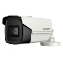 Cámara Bullet Hikvision 4 en 1 de la gama Value con sensor CMOS progressive scan de 8,29 megapíxeles, resolución máxima de 8 megapíxel 3480 x 2160, lente de 2.8 mm, ángulo de visión de 102,2 grados horizontales, iluminación mínima de 0,01 lux F2.0 AGC ON, visión nocturna EXIR con alcance de hasta 30 metros, modo día/noche automático o seleccionable entre color y blanco y negro mediante ICR, salida de vídeo 4 en 1 compatible con HDTVI, HDCVI, AHD y CVBS, conmutación de formato mediante switch, protección impermeable IP67, cuerpo fabricado en metal y plástico, dimensiones compactas y diseño pensado para una instalación exterior segura.