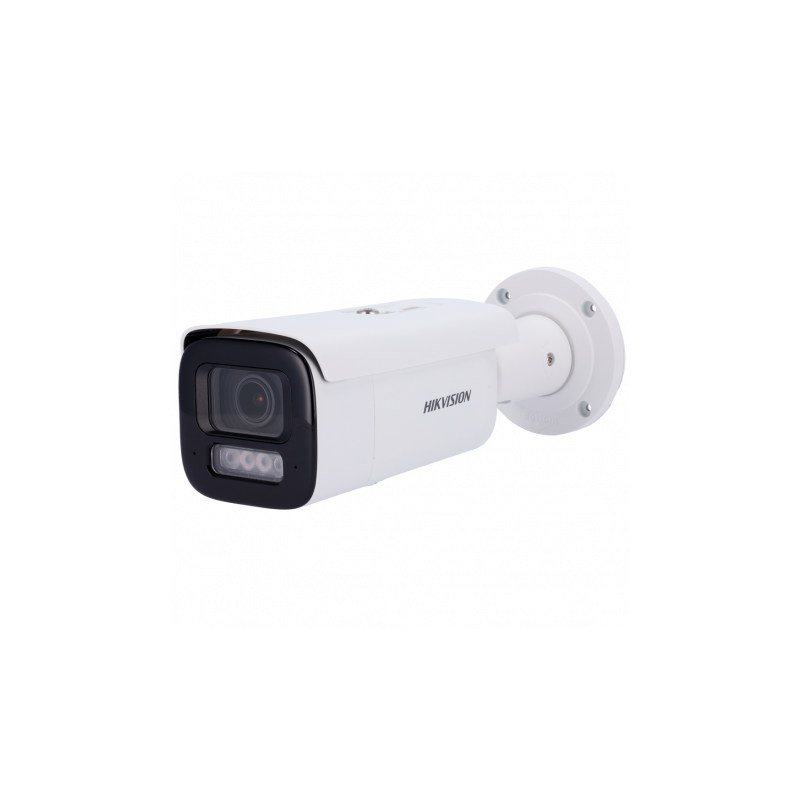 Cámara Bullet IP Hikvision, resolución 8 MP, lente varifocal motorizada 2.8 a 12 mm, luz híbrida 60 metros, protección IP67, IK10.