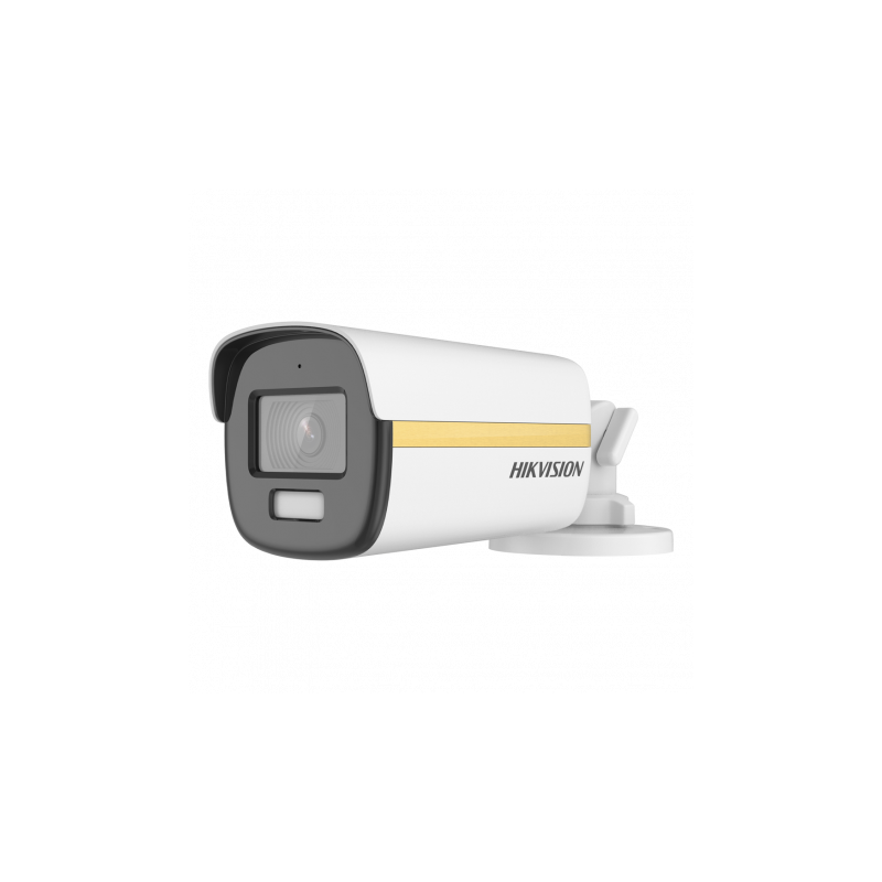 Cámara Bullet Hikvision 4en1, resolución Full HD 1080p, lente 2.8 mm, tecnología ColorVu para imagen a color durante el día y la noche, luz blanca con alcance de 40 metros, alarma luminosa, protección IP67, micrófono integrado, audio sobre coaxial, modelo profesional con sensor CMOS de alto rendimiento y salida seleccionable en HDTVI, HDCVI, AHD o CVBS.