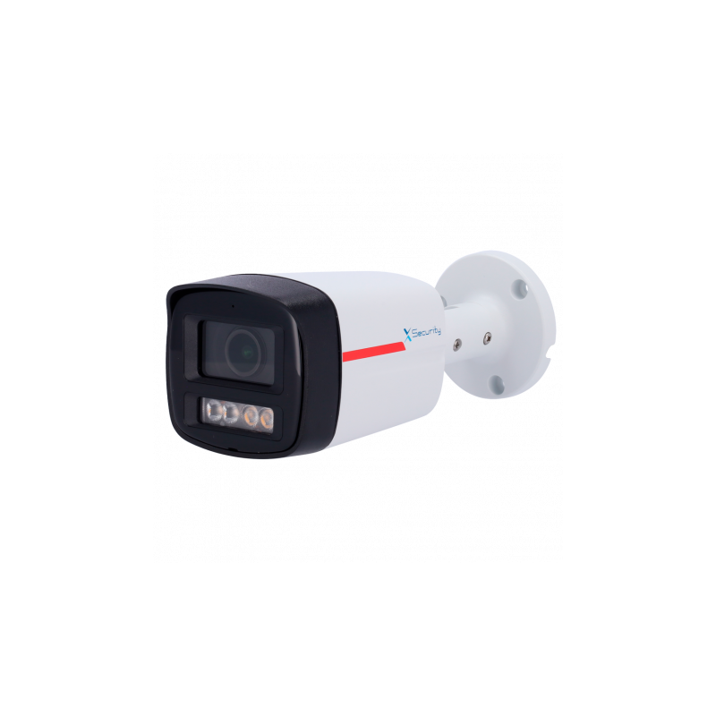 Cámara IP Bullet 8 MP, lente 2.8 mm, luz blanca hasta 50 metros, micrófono, ranura MicroSD 256 GB, protección IP67, PoE.