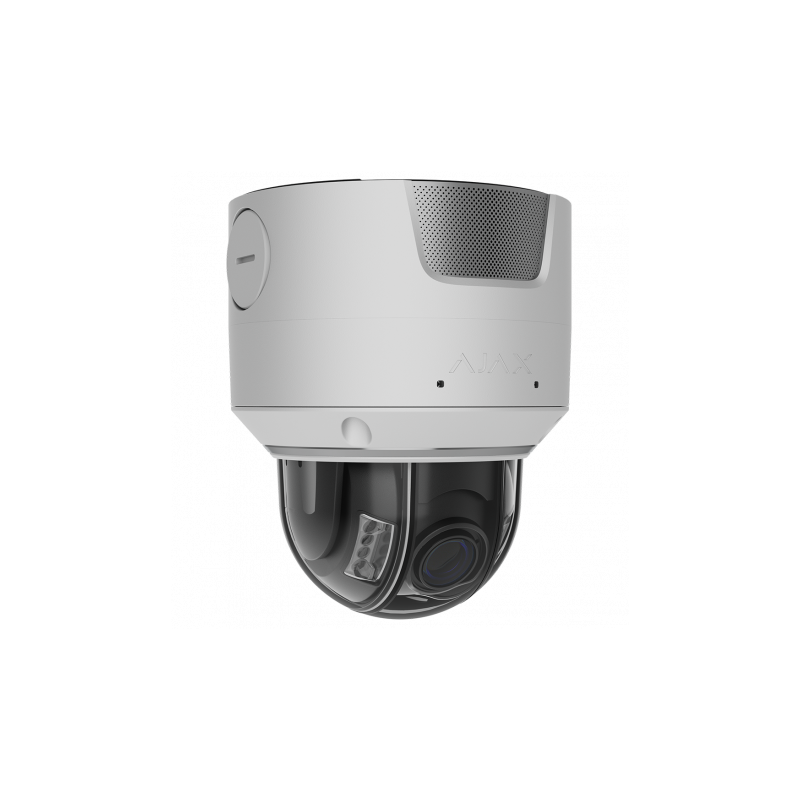 Cámara superior tipo domo IP de 8 megapíxeles con sensor 1/1,8 pulgadas Progressive Scan CMOS, equipada con lente varifocal motorizada de 2,8 a 12 mm, cubierta resistente IP67 e IK10, visión nocturna infrarroja hasta 40 metros y luz blanca hasta 25 metros, incorpora dos micrófonos integrados para grabación de audio y audio bidireccional, compresión avanzada H265, rango dinámico True WDR, funciones de inteligencia artificial y compatibilidad con PoE IEEE802.3at, fácil integración ONVIF con otros sistemas de videovigilancia.