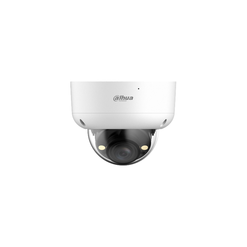 Domo 4 en 1 Dahua Lite, 2 megapíxeles a 25 o 30 imágenes por segundo, óptica fija de 2,8 mm, Smart Dual Light IR y luz blanca de hasta 40 metros, WDR real de 130 dB, reducción de ruido 3D NR, micrófono integrado, protección IP67 e IK10, alimentación de 12V CC.