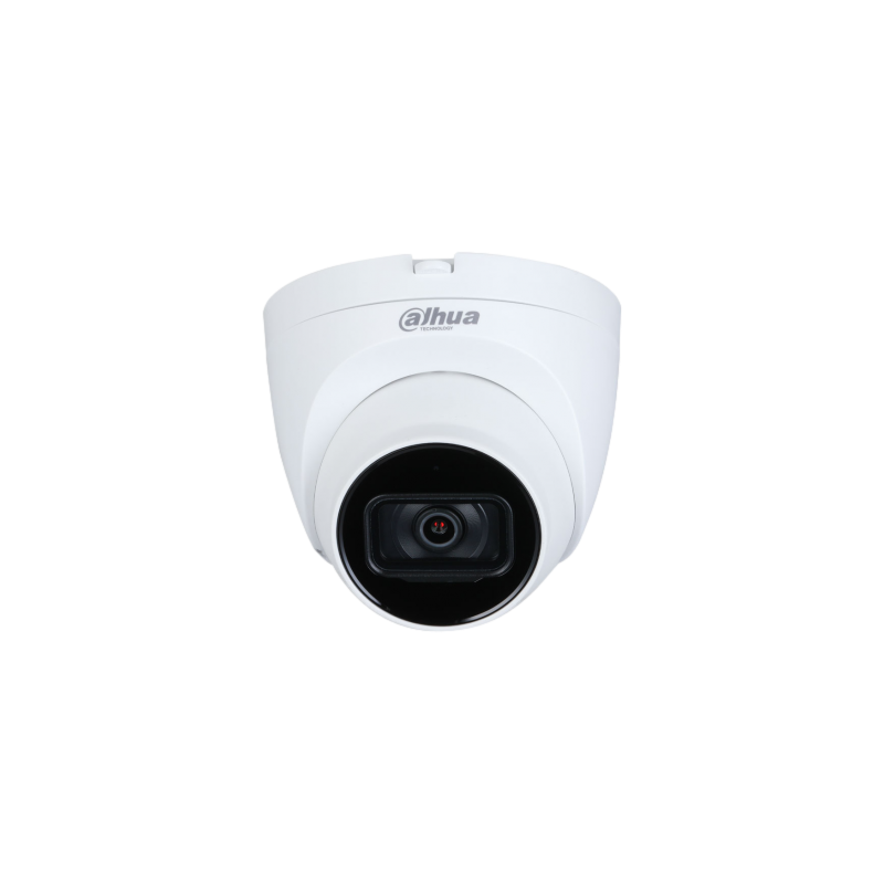 Domo 4 en 1 Dahua Pro Starlight de 5MP a 25 ips, óptica fija de 2,8 mm, Smart IR de 40 metros, WDR real de 120 dB, reducción de ruido 2D y 3D NR, audio por coaxial con micrófono integrado, protección IP67 y alimentación de 12V CC.