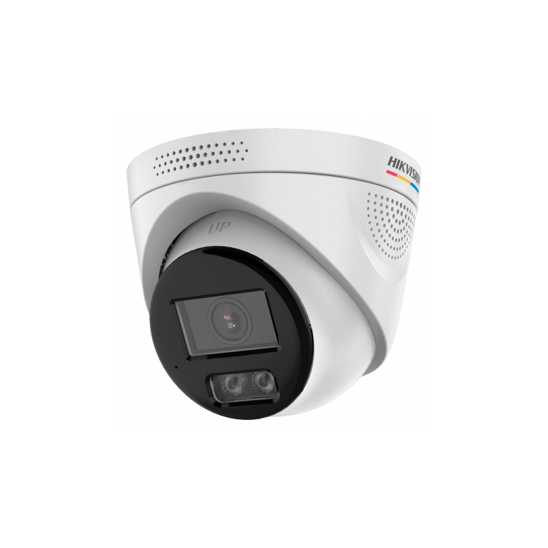 Cámara IP tipo Turret Hikvision serie VALUE con ColorVu 3.0, resolución de 4 megapíxeles, alimentación PoE conforme a IEEE802.3af. Tecnología ColorVu 3.0 que proporciona imagen en color gracias a su sensor de 1/1,8 pulgadas con apertura F1.0 y procesamiento HikAI-ISP. Lente de 2,8 mm, micrófono integrado, luz híbrida que combina infrarrojos y luz blanca con alcance hasta 30 metros. Integra detección de movimiento 3.0, clasificación de personas y vehículos mediante inteligencia artificial, altavoz, luz disuasoria blanca, protección IP67, ranura para tarjeta microSD hasta 512GB.
