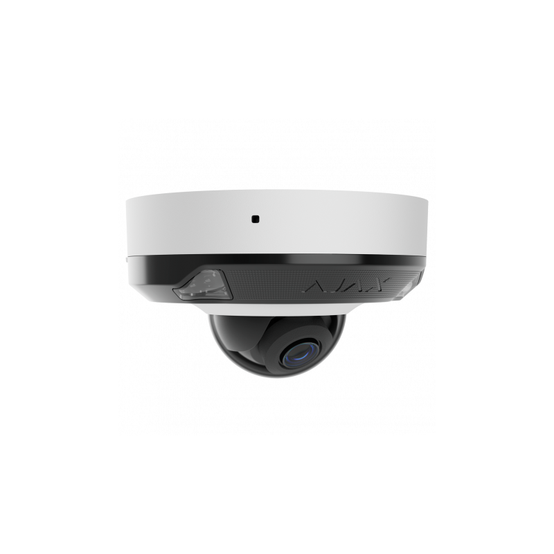 Cámara domo IP de 8 megapíxeles Ajax, sensor CMOS de 1/2.8 pulgadas, lente fija de 4 mm, con protección IP65. Incluye visión nocturna por infrarrojos y luz blanca de hasta 15 metros, micrófono integrado para grabación de audio, ranura MicroSD compatible hasta 256GB, compresión H.265+ y funciones de inteligencia artificial. Admite alimentación PoE según IEEE 802.3at/af y es compatible con ONVIF para una fácil integración en sistemas de videovigilancia.