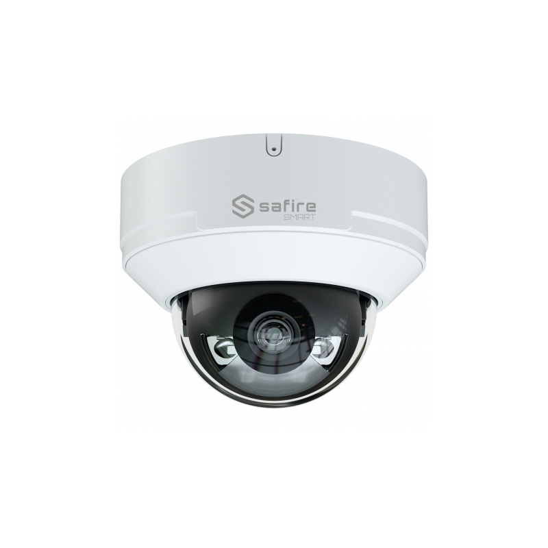 Cámara domo IP Safire Smart de la gama I1 con tecnología NightColor X y AI-ISP, sensor de 1/1.8 pulgadas, apertura F1.0 para máxima captación de luz, resolución de 4 megapíxeles, microSD de hasta 1TB, óptica fija de 2.8 mm, micrófono incorporado y led con alcance de 30 metros. Inteligencia artificial con clasificación precisa de personas y vehículos, generación de metadatos, protección IP67 y alimentación PoE bajo estándar IEEE802.3af. Proporciona imágenes en color en condiciones de oscuridad total, análisis avanzado con reducción de falsas alarmas, extracción de características y funcionalidades para análisis forense.