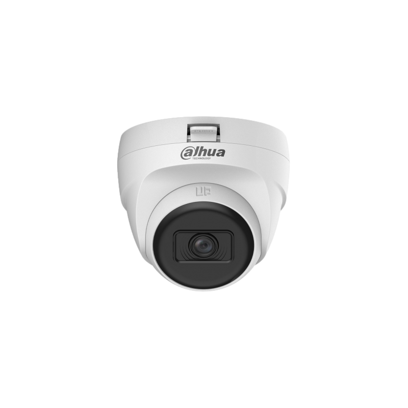 Domo 4 en 1 Dahua de 5 megapíxeles a 25 imágenes por segundo, equipado con ICR automático, sensibilidad de 0,02 lux en color y 0,002 lux en blanco y negro. Incorpora infrarrojo inteligente hasta 25 metros, óptica fija de 2,8 mm, WDR digital, reducción de ruido 2DNR y Smart IR. El menú OSD es multilenguaje. Ofrece salida 4 en 1 para CVI, TVI, AHD y CVBS, protección IP67 y alimentación de 12 VDC.