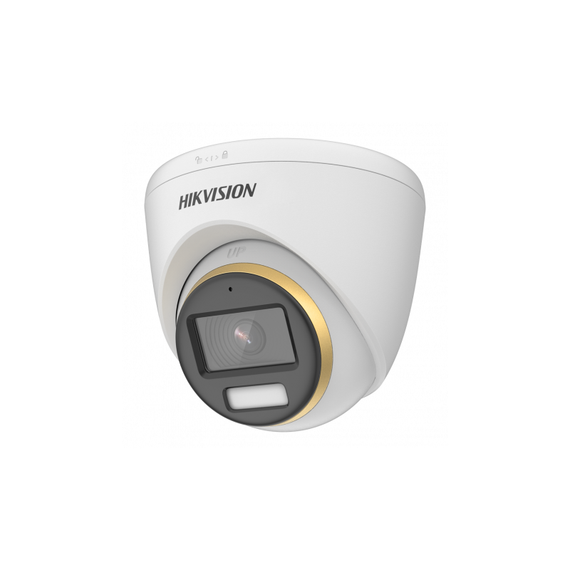 Cámara domo 4 en 1 Hikvision gama PRO, resolución 1080p, lente de 2,8 mm, imagen a color las 24 horas con tecnología ColorVu, luz blanca con alcance de 40 metros, protección impermeable IP67, micrófono integrado, audio sobre coaxial, adecuada para interiores y exteriores, compatible con tecnologías HDTVI, HDCVI, AHD y CVBS, sensor CMOS de alto rendimiento.