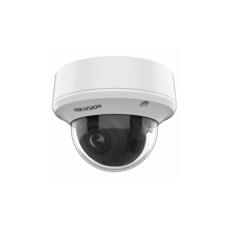 Cámara domo 4 en 1 Hikvision de la gama Value, equipada con sensor High Performance CMOS de 8 megapíxeles, resolución máxima de 3840x2160 píxeles, salida conmutable entre HDTVI, HDCVI, AHD y CVBS, lente varifocal motorizada de 2.7 a 13.5 mm, ángulo de visión de 108.1 a 45.6 grados, iluminación mínima de 0.01 lux, visión infrarroja de 0 lux gracias a Smart IR EXIR con alcance de hasta 60 metros, función día y noche con filtro ICR, protección impermeable IP67, carcasa metálica y soporte para instalaciones en exteriores.