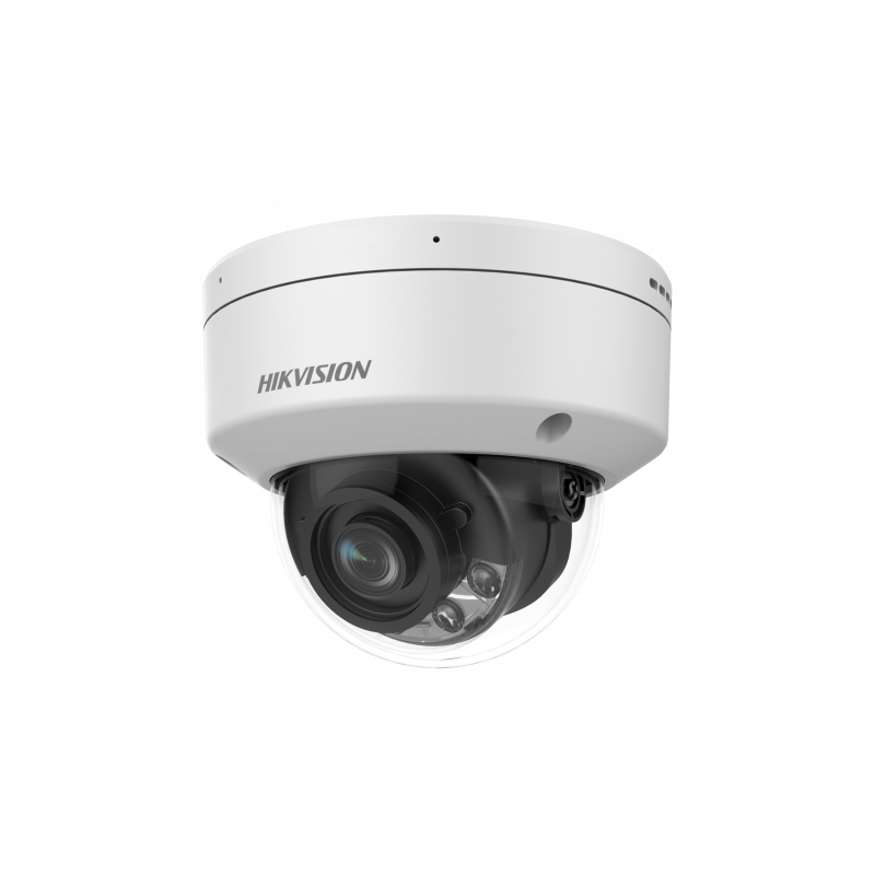 Cámara domo IP Hikvision PRO, 4 MP, lente 2.8 mm, IR y luz blanca hasta 30 metros, PoE+, WDR 120 dB, protección IP67.