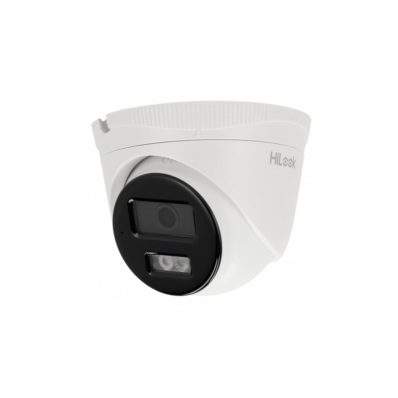 Cámara IP Turret HiLook, resolución 6 MP, lente 2.8 mm, micrófono, luz híbrida 30 metros, PoE, detección humano y vehículo, IP67.