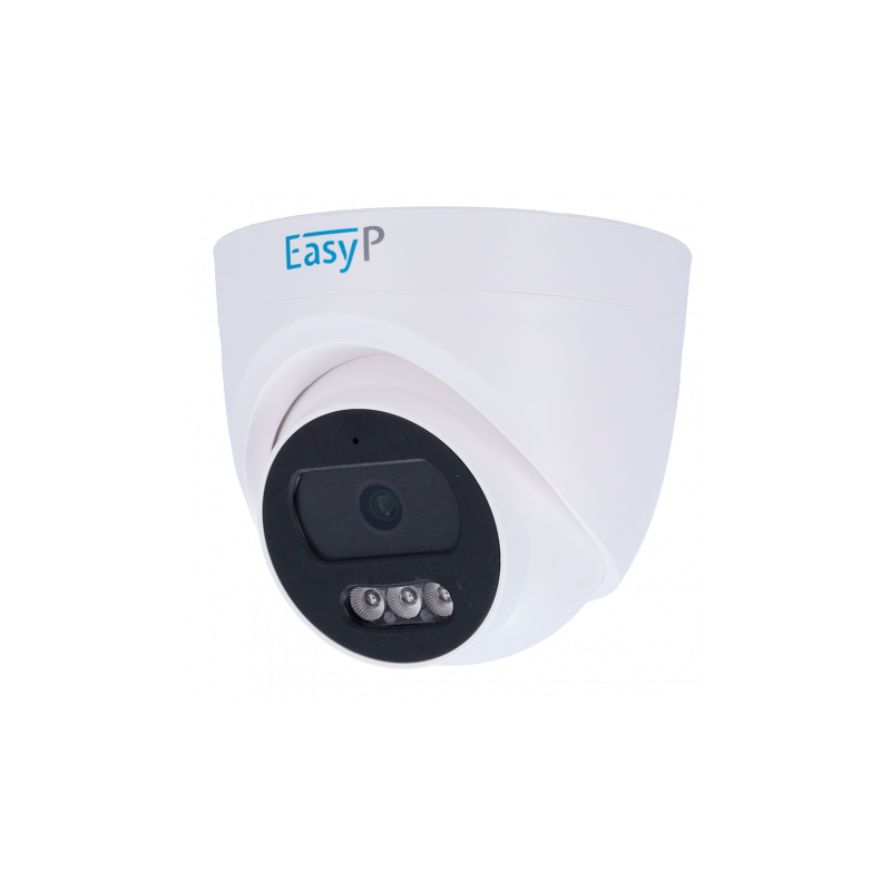 Cámara turret IP EasyP de 2 megapíxeles con resolución Full HD, lente fija de 4 mm, campo de visión horizontal de 73 grados, vertical de 40 grados, diagonal de 88 grados, micrófono integrado, IR de hasta 25 metros, compresión H.264, H.265, JPEG, AVI, MJPEG, funciones inteligentes basadas en inteligencia artificial para detección de humanos y vehículos, reduce las falsas alarmas y mejora la vigilancia, tecnología PoE, conexión P2P, compatible con ONVIF, instalación plug and play, filtro ICR para visión día y noche, material plástico.