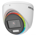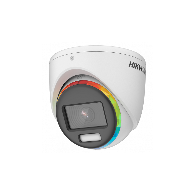 Cámara Turret Hikvision 4en1 de la gama PRO, resolución 1080p, lente de 2,8 mm, tecnología ColorVu para imagen a color 24 horas, iluminación con luz blanca de hasta 20 metros, alarma luminosa, protección IP68 contra agua y polvo, salida de vídeo compatible con HDTVI, HDCVI, AHD y CVBS, sensor de imagen CMOS de alto rendimiento, procesamiento de imagen WDR 130 dB y reducción de ruido digital 3D DNR.