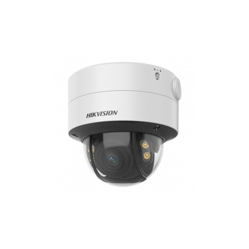 Cámara Domo IP Hikvision, 4 MP, lente varifocal motorizada de 3.6 a 9 mm, luz blanca 40 metros, ColorVu, PoE, IP67, IK10.